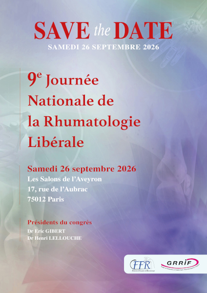 Nous serons heureux de vous accueillir le samedi 26 septembre 2026 pour la 9e Journée Nationale de la Rhumatologie Libérale (JNRL).